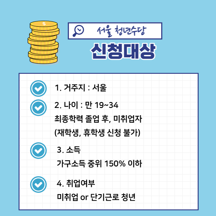 - 접수기간 내 온라인 신청만 가능 (금융·복지 > 청년수당 > 신청 바로가기)