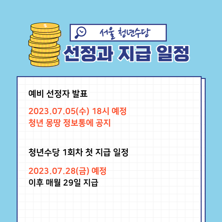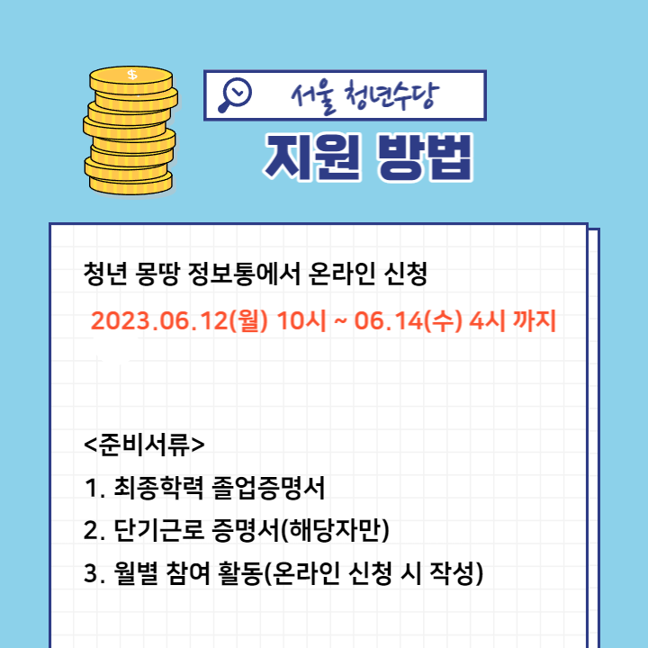 서울시에서 2023년 청년수당 2차 참여자를 모집합니다.