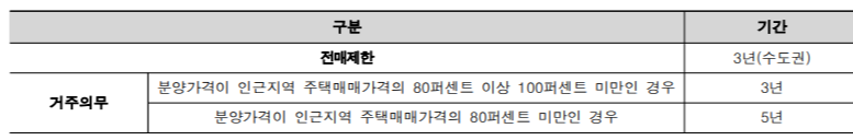 1. 전매 제한은 3년, 거주 의무는 5년으로 추정됩니다.
