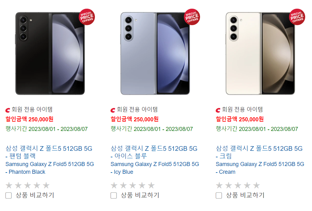 또한, Z폴드5의 경우 1tb용량은 삼성닷컴에서만 구매가 가능합니다.