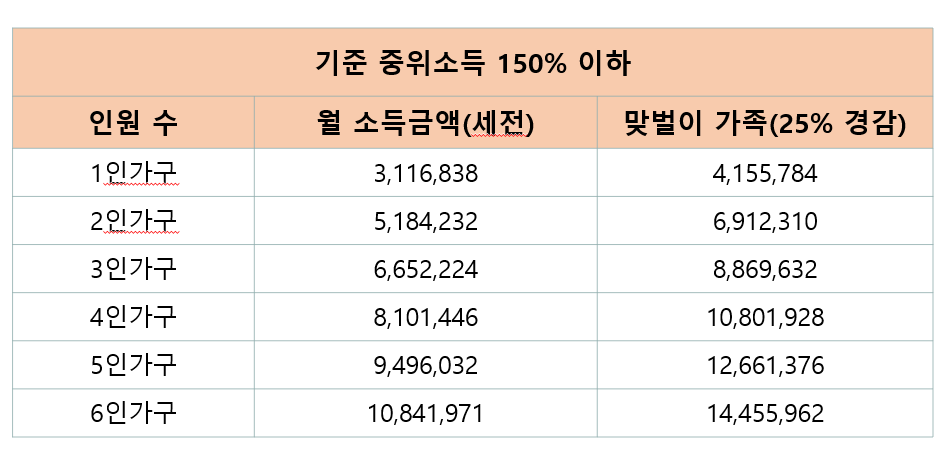 * 맞벌이 가정은 부부 합산소득 25%가 경감됩니다.