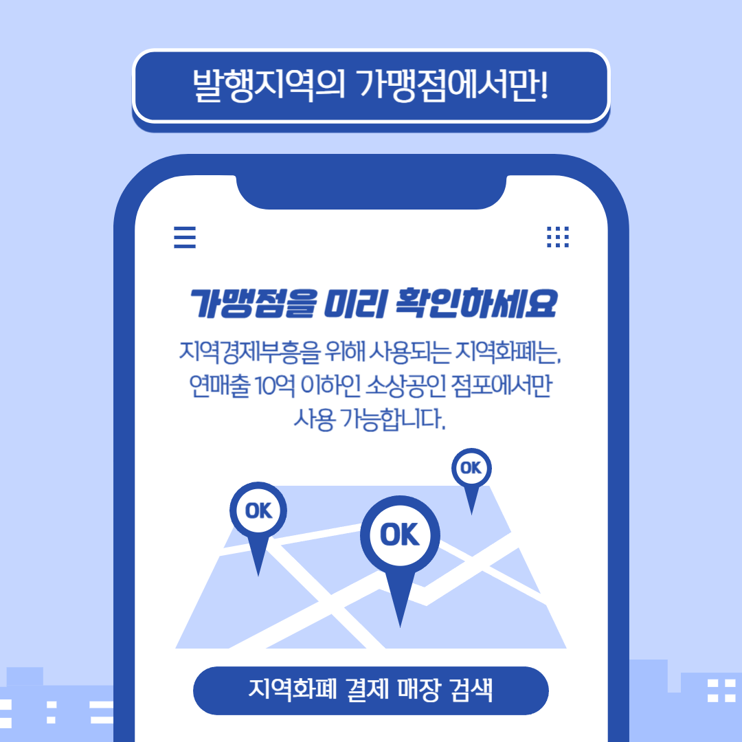 자치구별로 구매한 상품권은 해당 자치구 내 가맹점에서만 사용이 가능합니다.