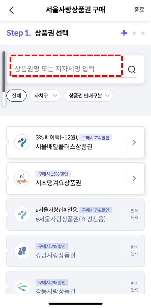 서울사랑상품권은 구매한 지자체 내에서만 사용이 가능합니다.