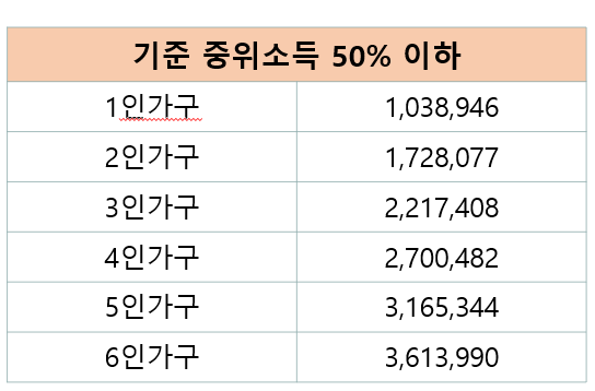 2023 중위소득 50% 기준