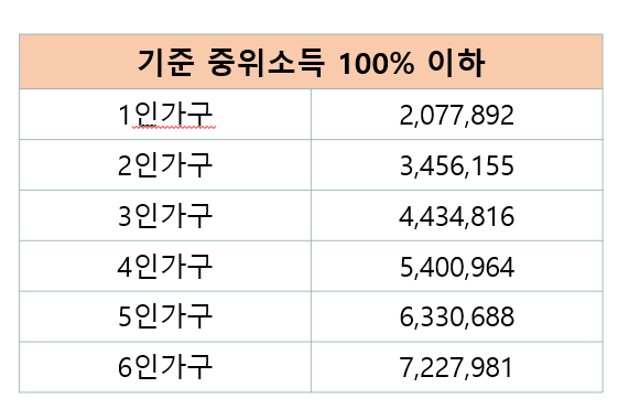- 소득 인정액 기준 중위소득 100% 이하