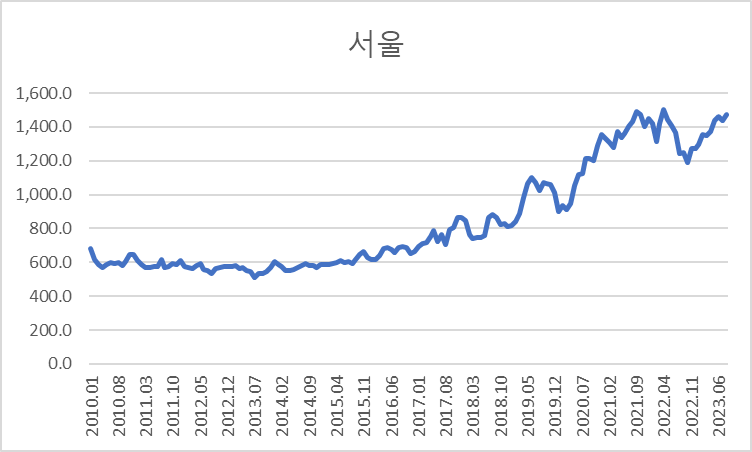 2023년에는 아파트 매매가격이 살짝 다시 반등했습니다.