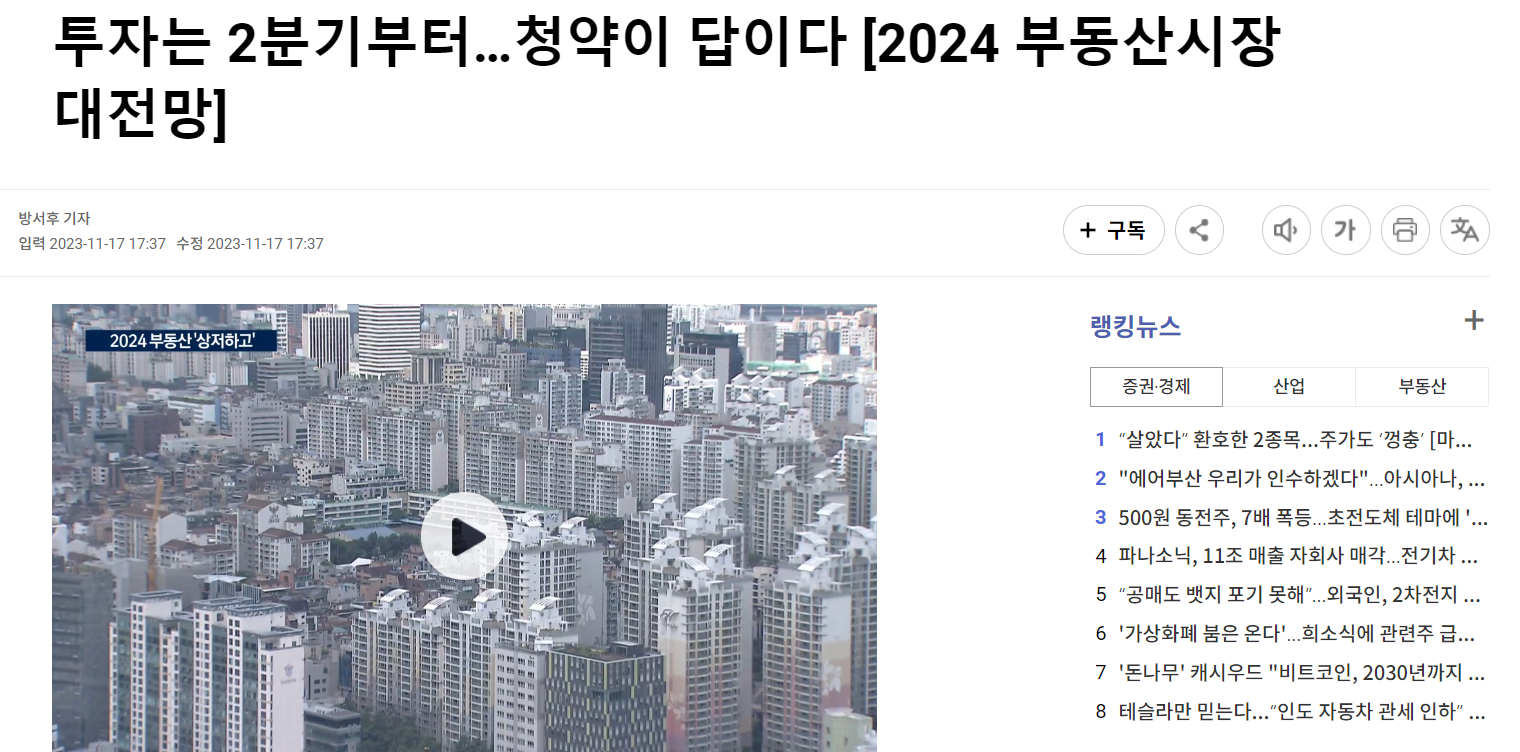 다만, 아직 청약을 하지 않으신 분들이라면 지금의 흔들리는 분위기가 아니라 차츰 정상궤도에 올라갈 2024년 하반기를 노려보시라고 말씀드리고 싶습니다.