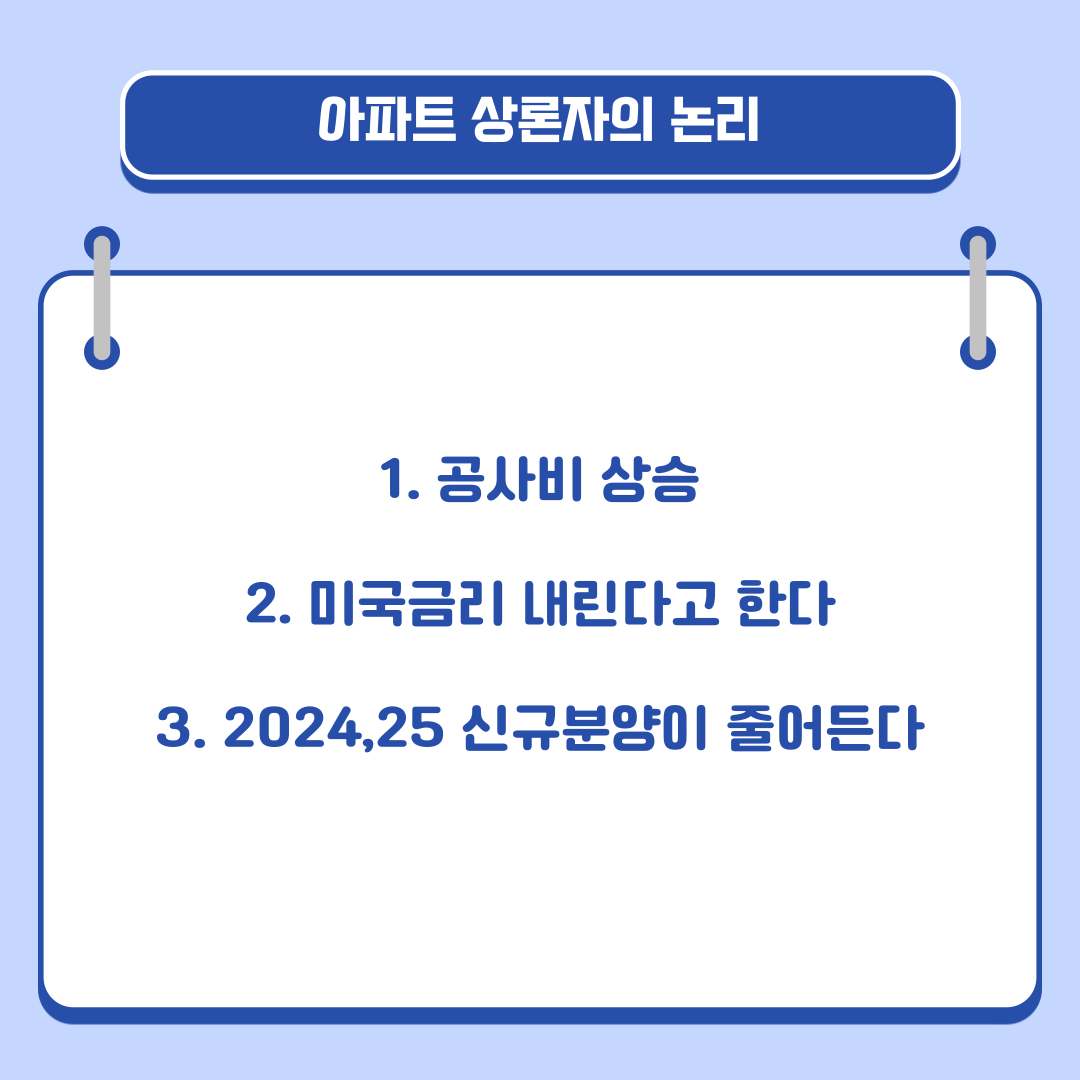 2024, 2025년 서울, 수도권의 신규분양이 적을 것으로 보인다는 논리입니다.