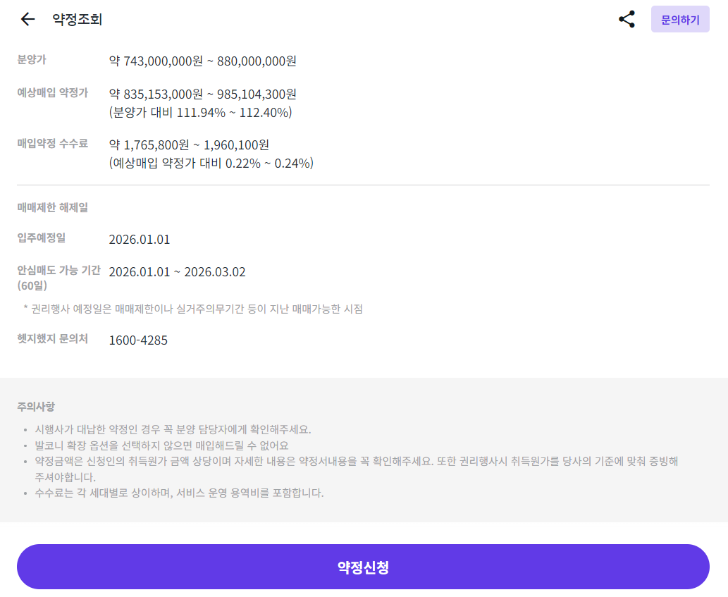 - 매입약정가 : 8억 3,500만 원 ~ 9억 8,500만 원