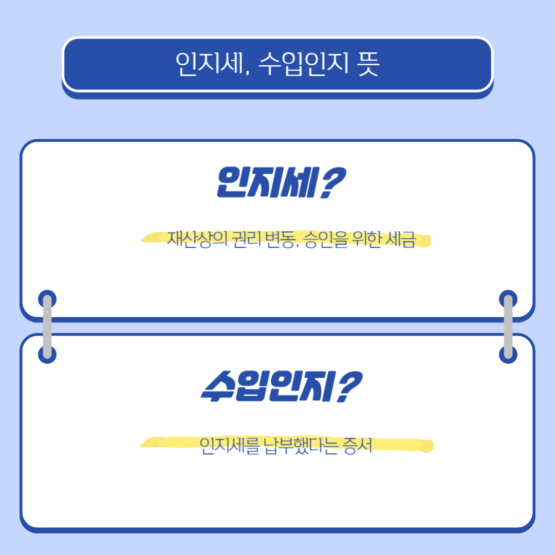 수입인지란 국고수입이 되는 세입금(歲入金)의 징수를 위하여 기획재정부가 발행하고 있는 인지로써, 인지세법 제5조에 따라 인지세를 납부하는 데에 사용되는 증표입니다. 인지세를 납부한 영수증이라고 생각하시면 쉬우실 것 같습니다.
