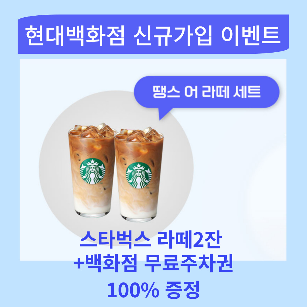 현대백화점 신규가입시 100% 증정- 스타벅스 라떼2잔 + 무료주차