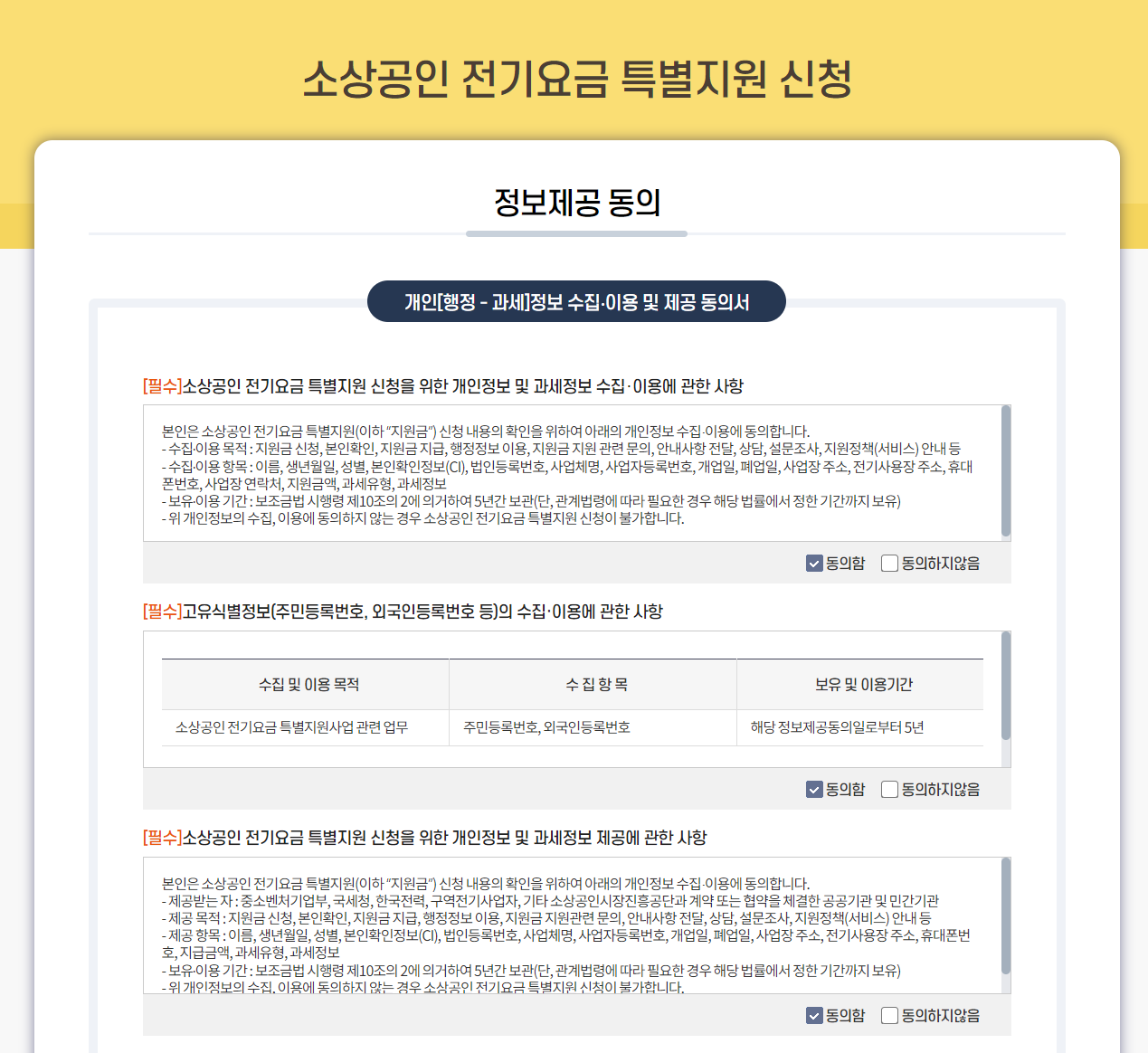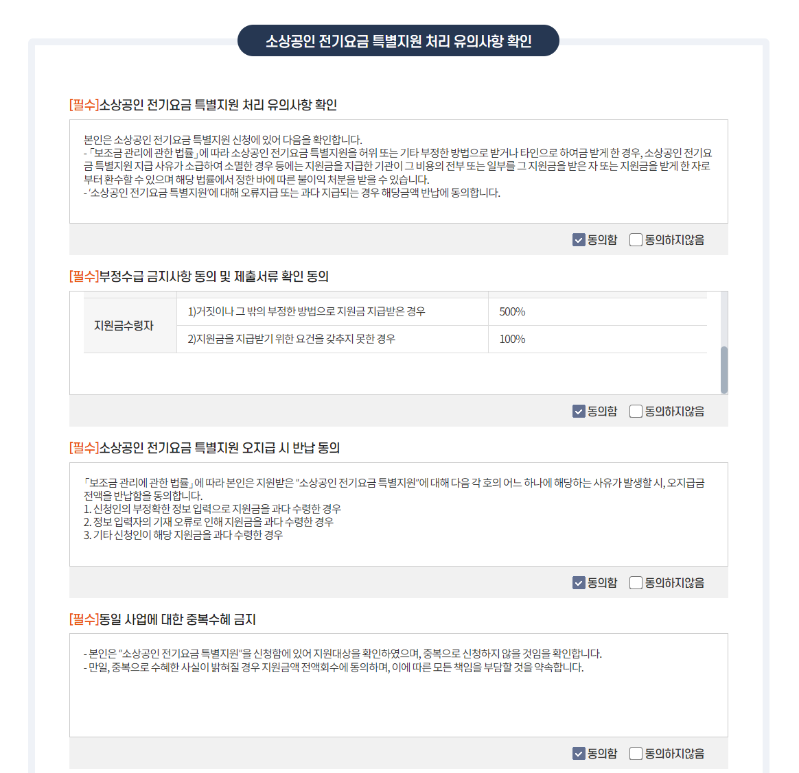 소상공인 전기요금 특별지원 처리 유의사항에 대한 동의를 하면,