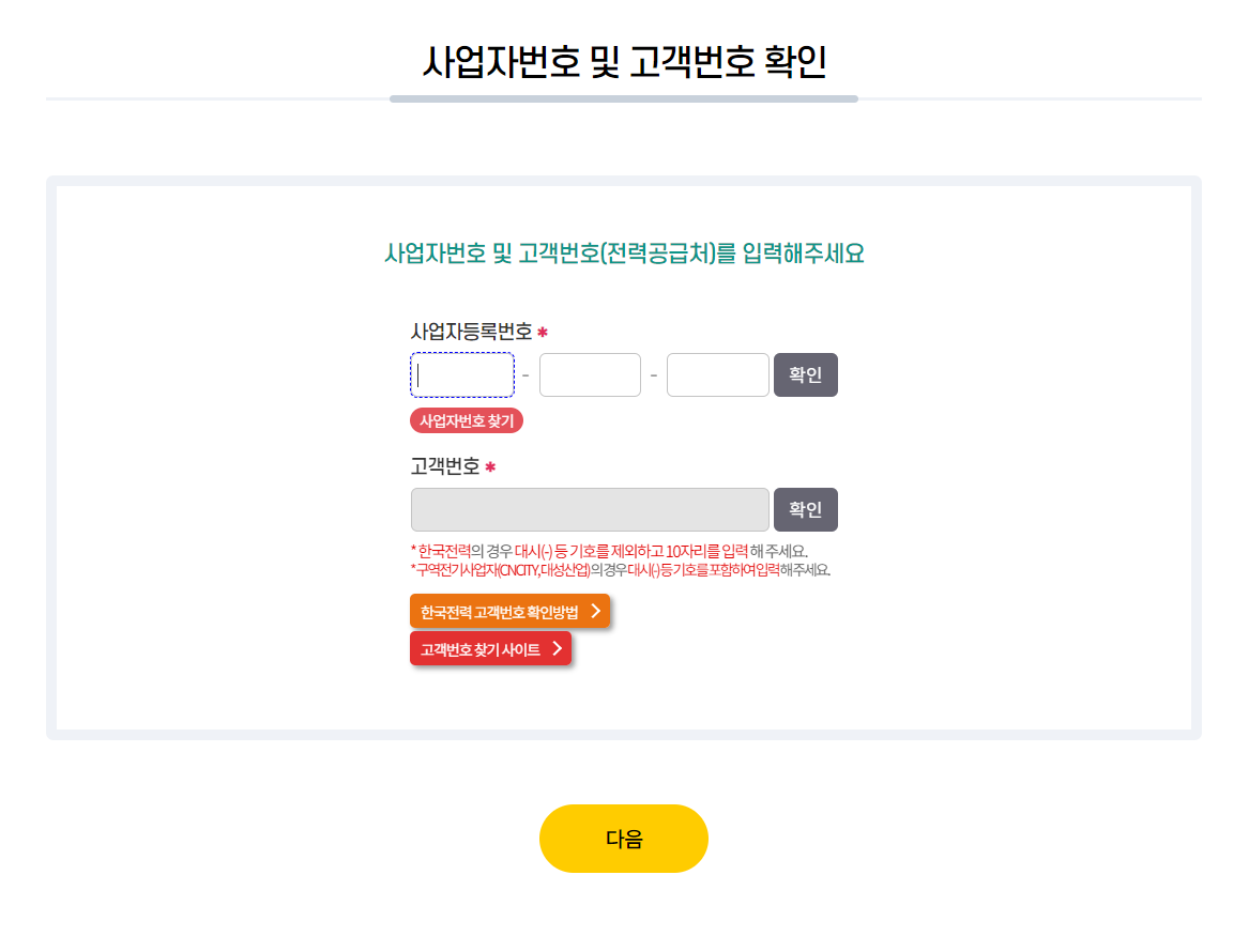 사업자등록번호와 고객번호를 입력합니다.