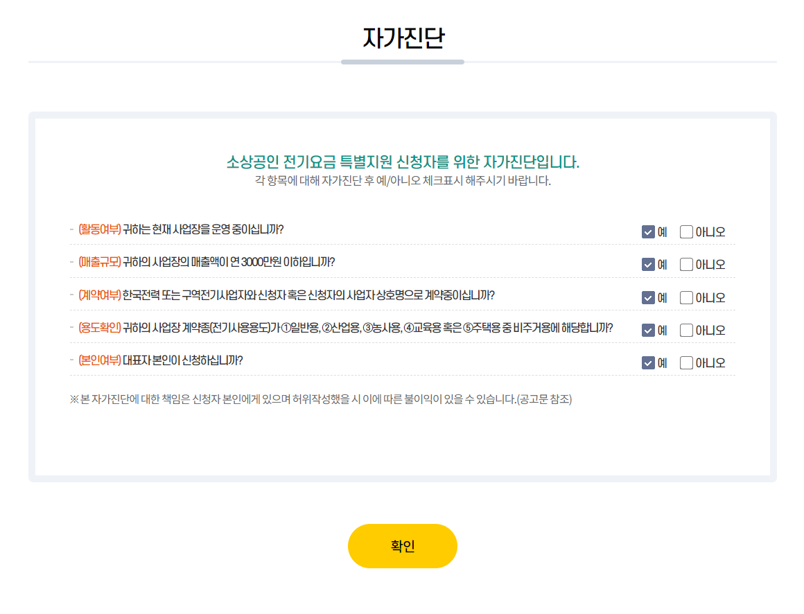 다시 한 번 자가진단을 통해 대상자가 맞는지 확인을 합니다.
