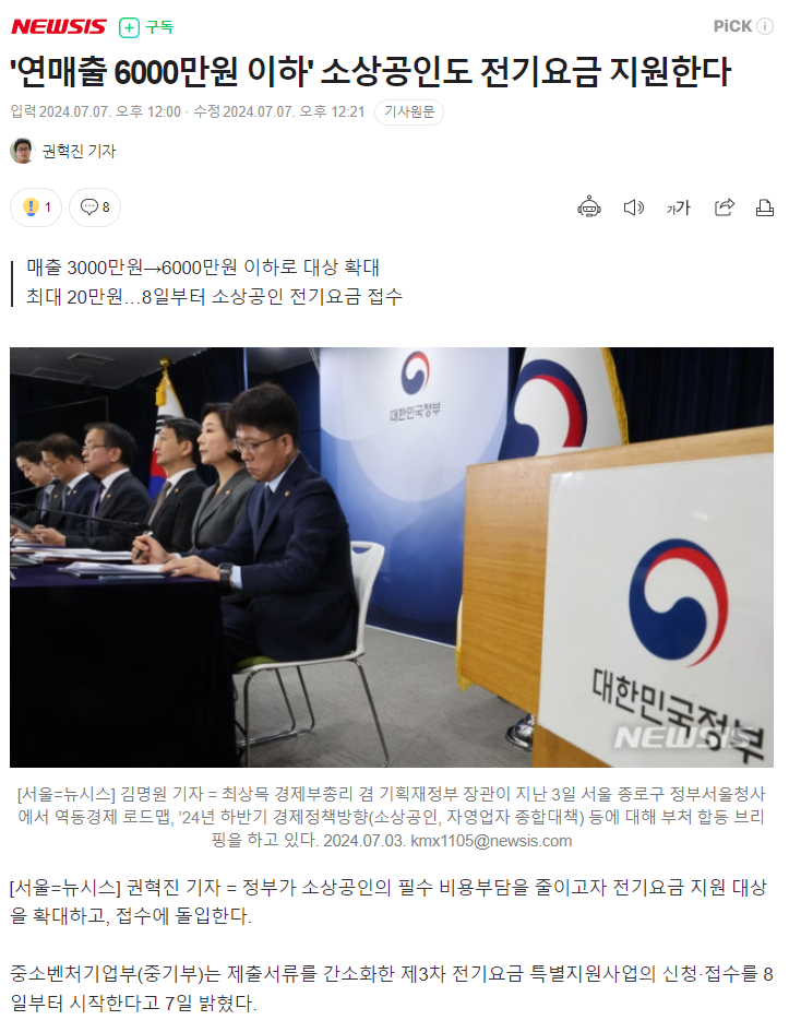 하반기 소상공인 전기요금 특별지원사업 신청.접수를 7월 8일 9시부터 시작합니다.