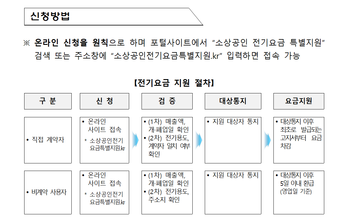 지원 신청은 소상공인 전기요금 특별지원 사이트에서 신청하시면 됩니다.