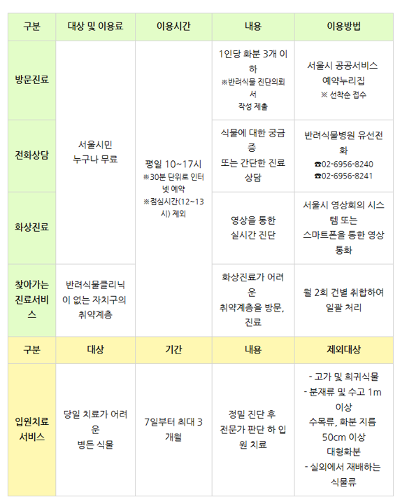1. 반려식물병원 : 심각한 상태일 때, 종합병원